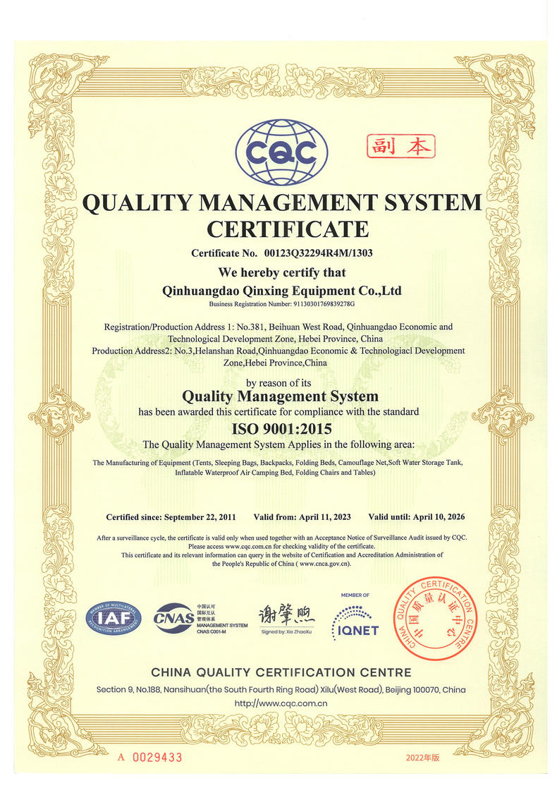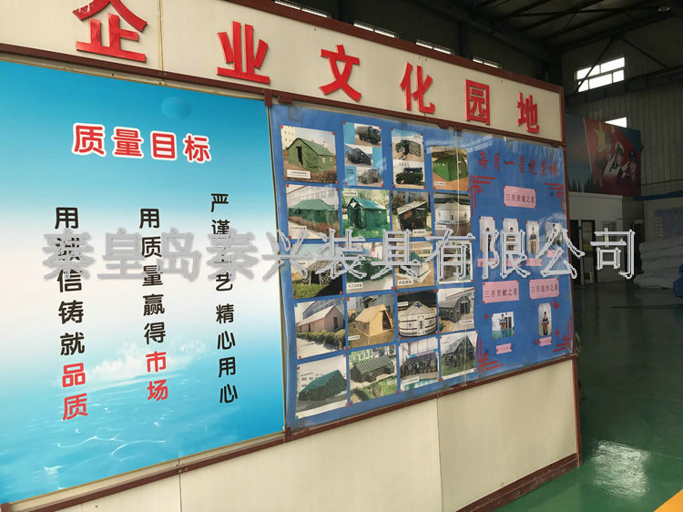 秦皇島秦興裝具有限公司有限公司源于我國(guó)第3524工廠(chǎng),創(chuàng)建于2005年,占地面積30畝,是一家致力于研究,發(fā)展,制造和銷(xiāo)售為一體的綜合性裝具及紡織服裝加工生產(chǎn)企業(yè),我們的主要產(chǎn)品有單、棉帳篷,民用帳篷,旅游帳篷集各種機(jī)工產(chǎn)品等。
